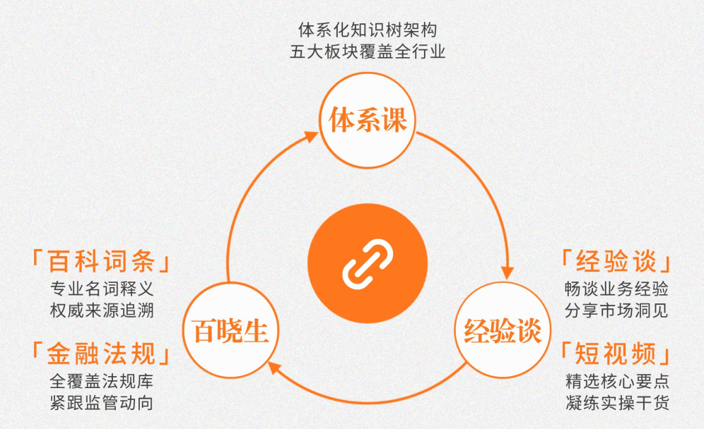 助力金融從業(yè)者提升在線學習效果,資管云4.0架構(gòu)全面調(diào)整,體系課·經(jīng)驗談·百曉生三足鼎立,從知識樹體系課,拓展到大咖業(yè)務經(jīng)驗分享,再升級至金融百科數(shù)據(jù)查詢工具平臺。