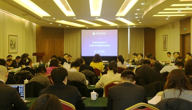 在上述背景下,智信研究公司于12月19日在北京友誼賓館舉辦了主題為“資管機(jī)構(gòu)投資PPP過程中的困惑與機(jī)會(huì)”的資管沙龍第15期活動(dòng)。來自商業(yè)銀行、信托公司、保險(xiǎn)資管公司、咨詢公司等十余位PPP業(yè)務(wù)資深人士就PPP業(yè)務(wù)相關(guān)問題展開了圓桌對(duì)話。含聽眾席在內(nèi),全場(chǎng)與會(huì)嘉賓達(dá)60人。